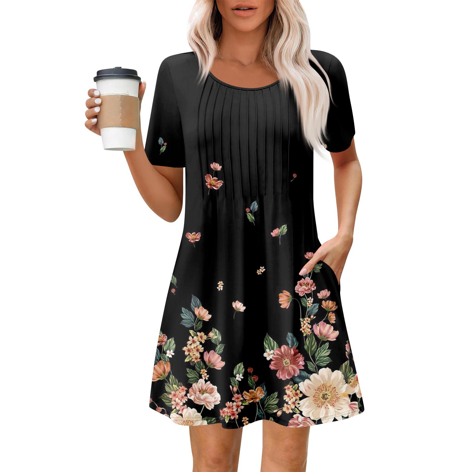 Женское летнее платье свободного покроя для пляжного отдыха, сарафан с коротким рукавом и круглым вырезом, с карманом, с коротким рукавом, платье-рубашка L чёрный