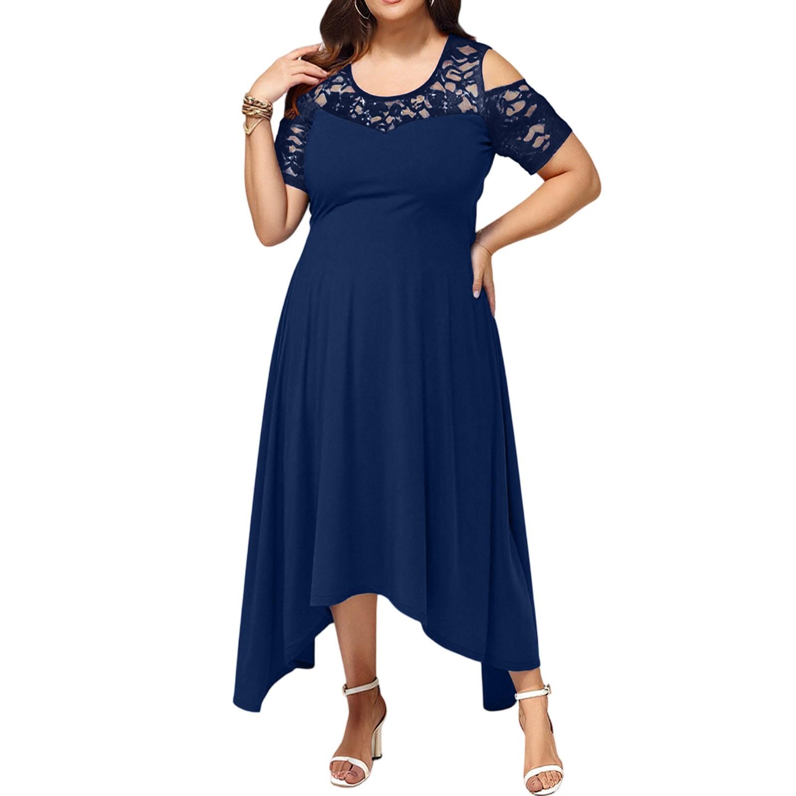 Женское летнее платье с открытыми плечами, кружевной отделкой, элегантное, оверсайз, однотонное XXL