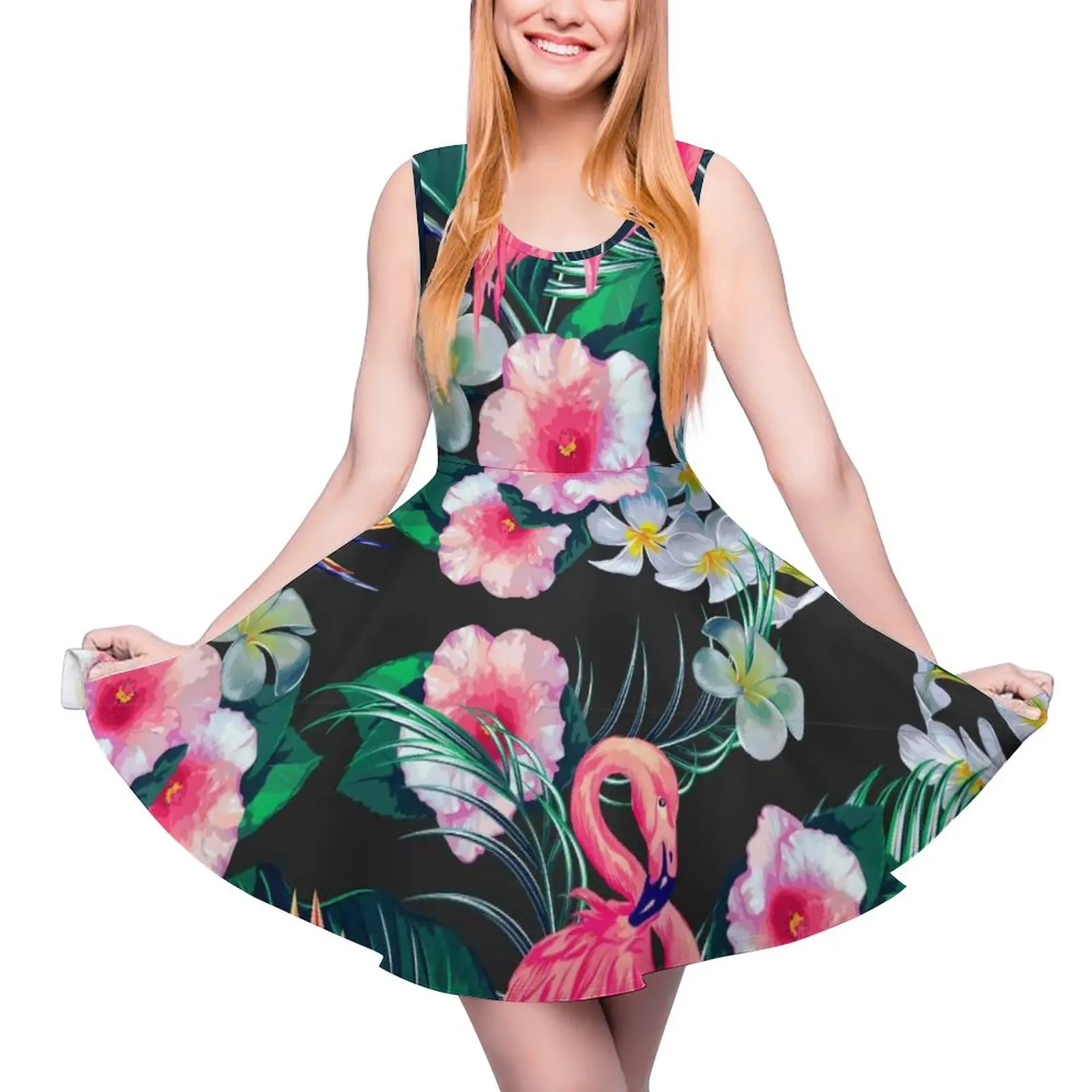 Женское летнее платье с цветочным принтом и фламинго, большие размеры