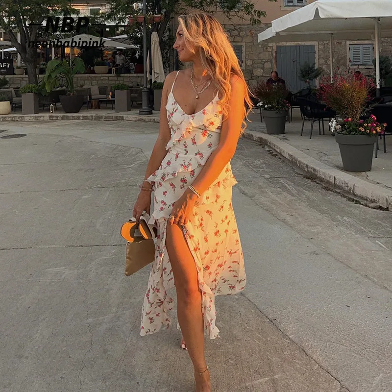 Женское летнее платье с цветочным принтом, V-образным вырезом