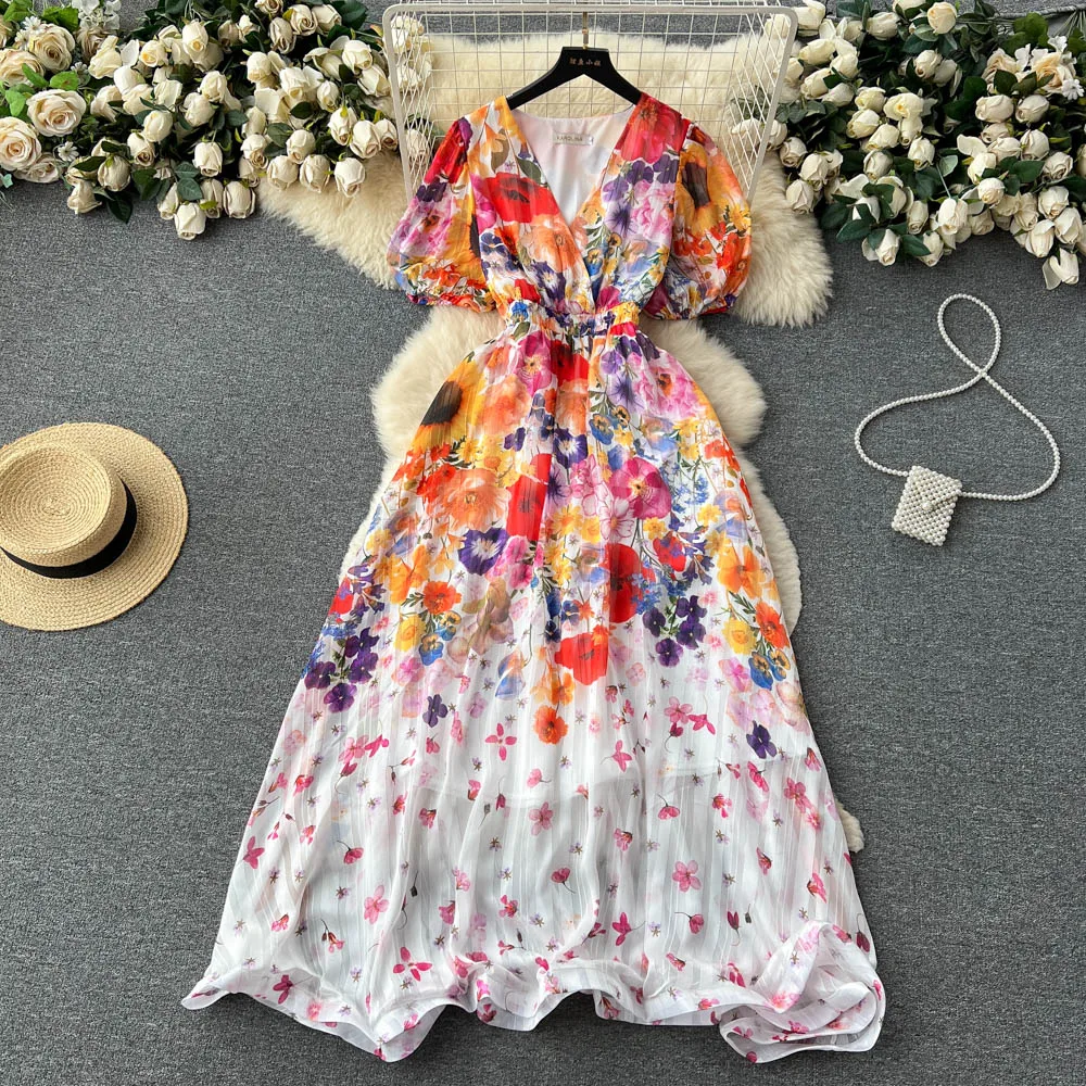 Женское летнее платье-трапеция с V-образным вырезом и коротким рукавом