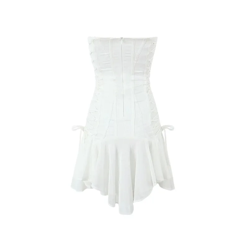 Женское летнее платье SIRENA с открытыми плечами, белое мини-платье без бретелек со шнуровкой