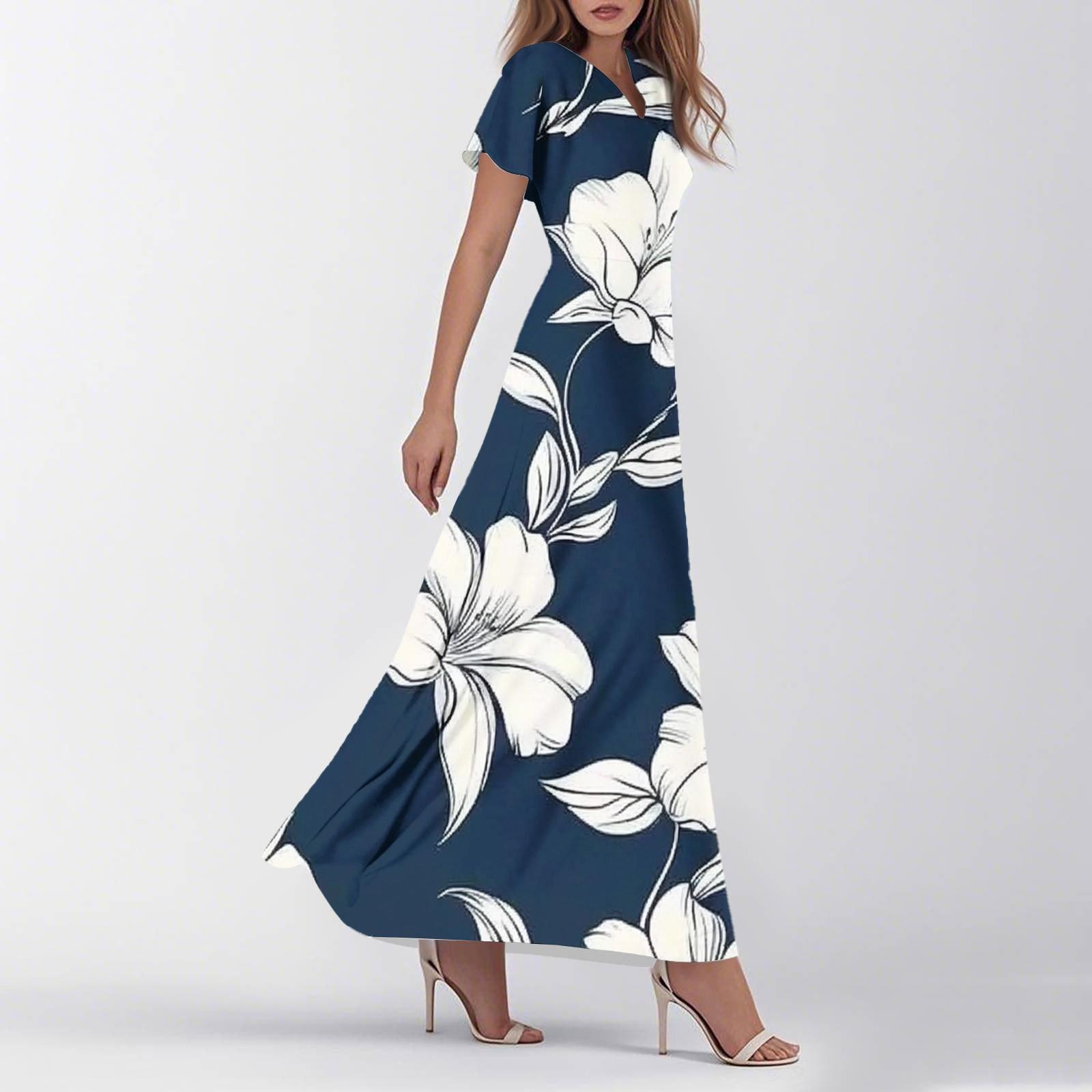 Женское летнее повседневное модное ретро-платье с цветочным принтом и коротким рукавом XL синий