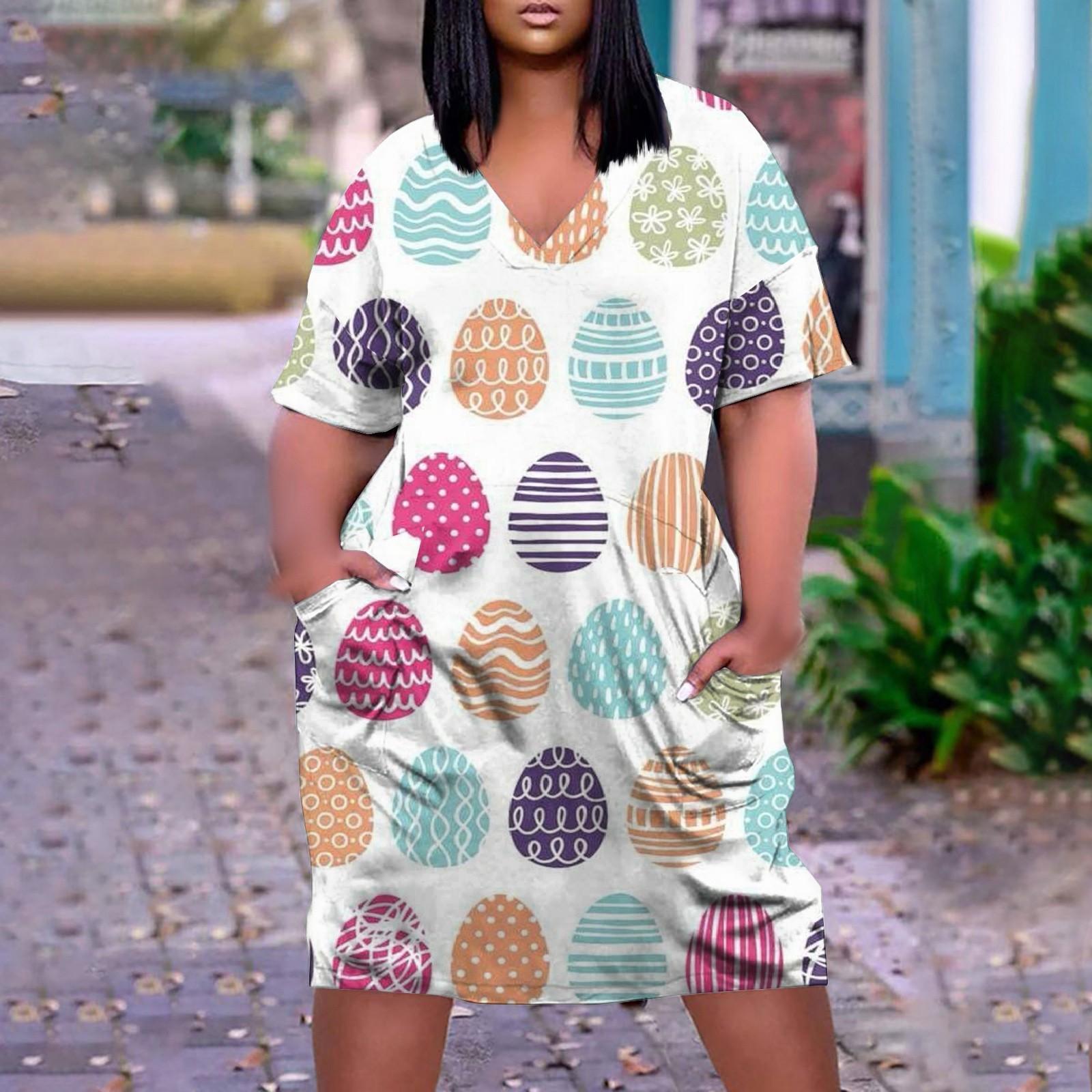 Женское летнее повседневное платье больших размеров с v-образным вырезом и коротким рукавом с карманом до колена XL белый