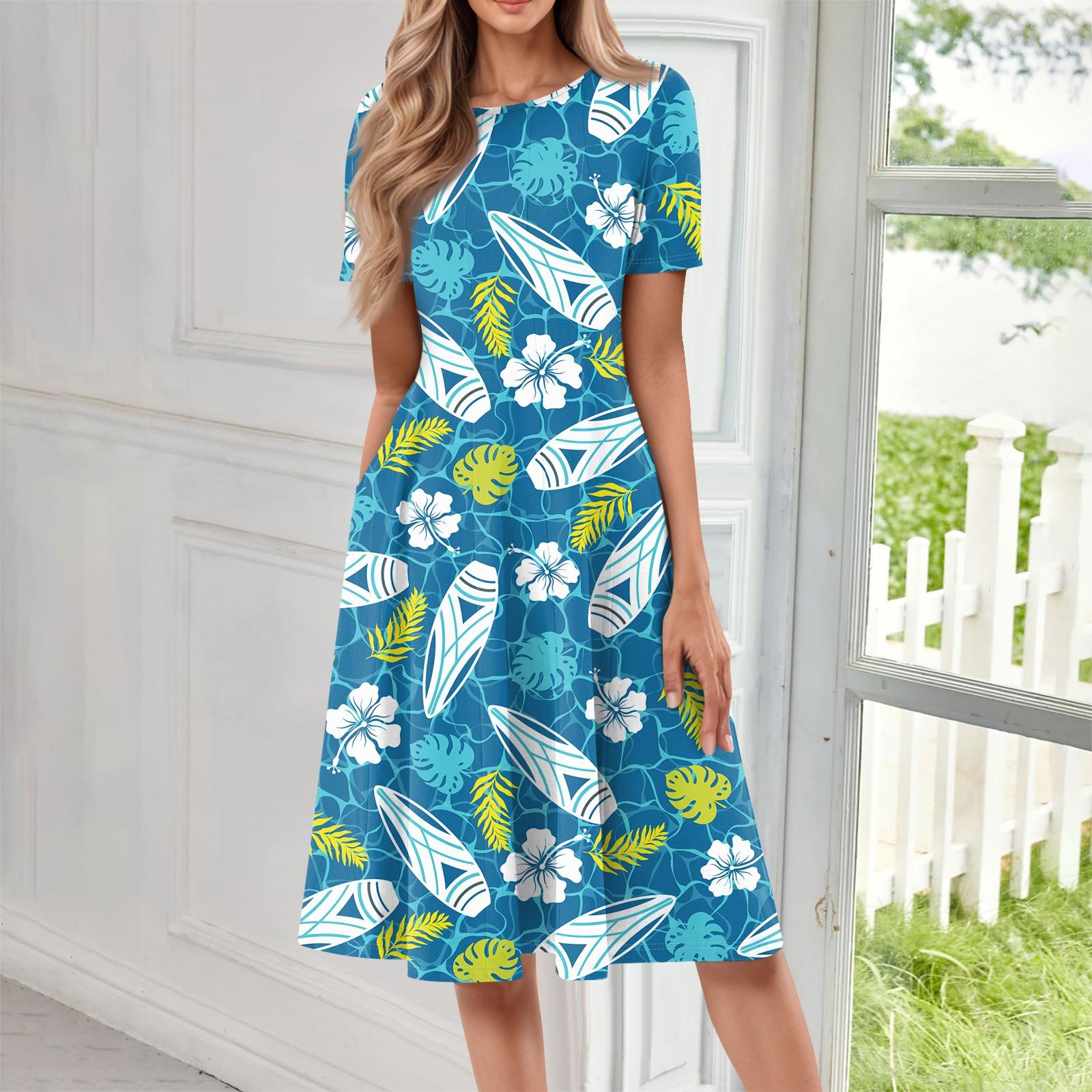 Женское летнее повседневное платье U-образной формы с завязкой на кармане и короткими рукавами L синий