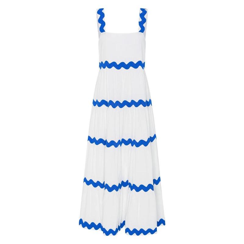 Женское летнее простое сексуальное платье-комбинация с гофрированным верхом и свободным кроем M синий/белый