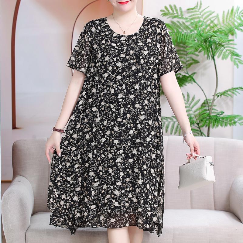 Женское летнее шифоновое платье размера плюс 3XL-7XL, повседневное свободное винтажное длинное платье большого размера с рукавами, летняя одежда 4XL чёрный