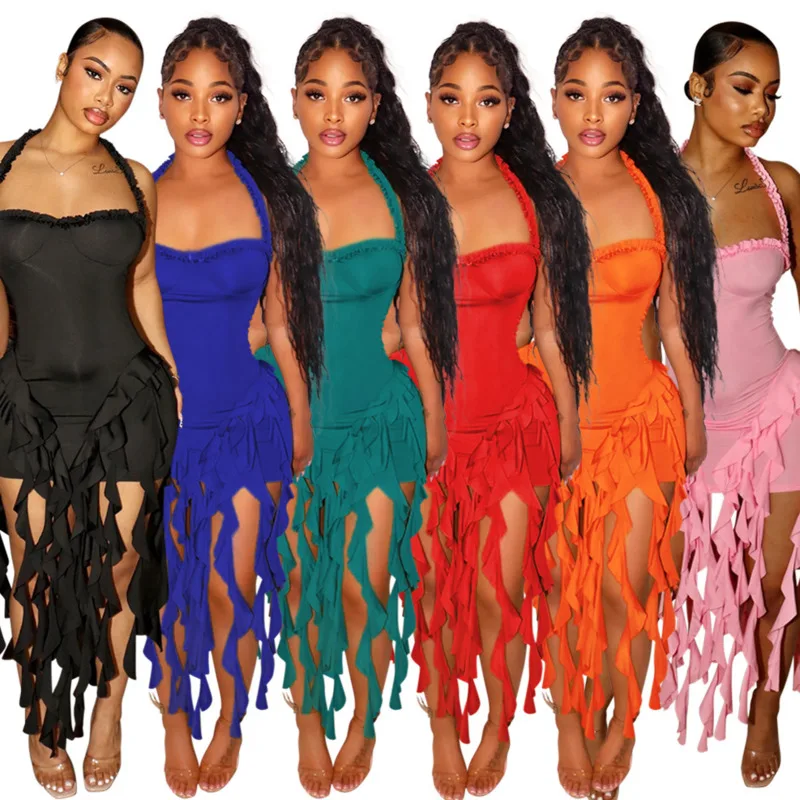 Женское лоскутное платье-пуловер с разрезом, короткое длинное платье без рукавов на бретелях