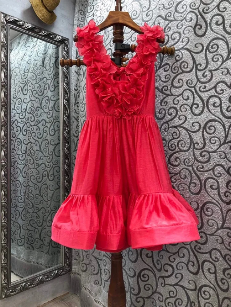 Женское льняное платье без рукавов, белое красное Клубное платье с V-образным вырезом и каскадными оборками, весна-лето 2021