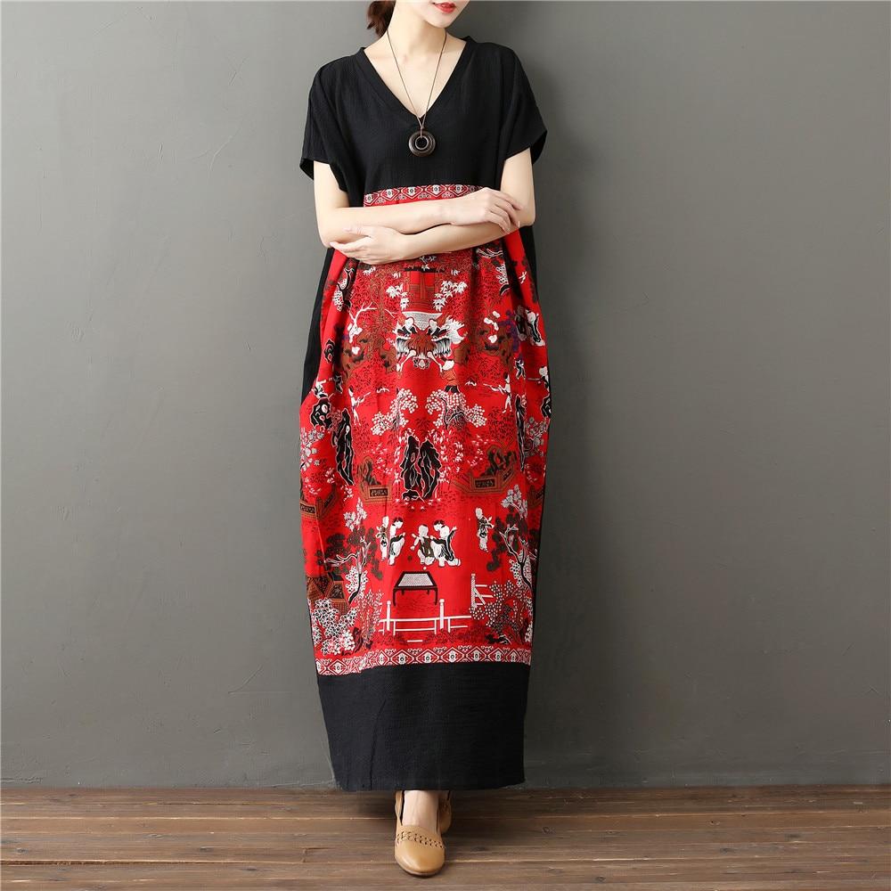 Женское льняное платье DIMANAF, лето 2021, женское свободное с v-образным вырезом и принтом в китайском стиле, новое винтажное платье оверсайз One Size красный