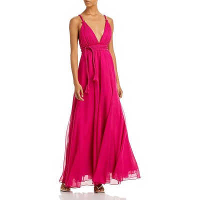 Женское макси-платье Alice and Olivia с рюшами для коктейлей и вечеринок BHFO 4635, Raspberry