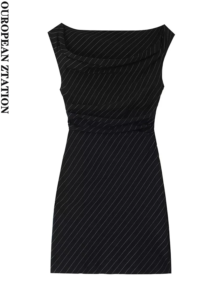 Женское мини-платье в полоску, с коротким рукавом и асимметричным вырезом