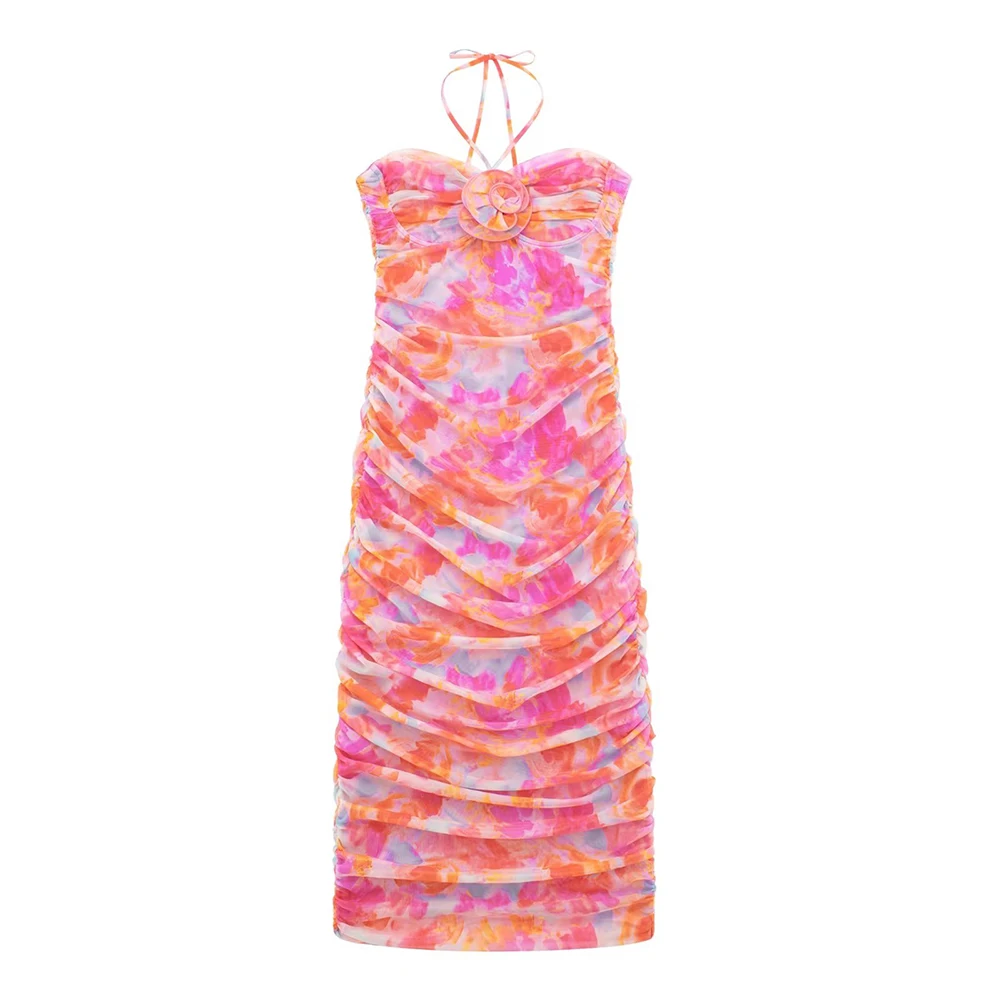 Женское мини-платье из тюля PB & ZA, элегантное Привлекательное платье из сетчатой ткани с принтом, платье со складками и вырезом, модель 2022, ...