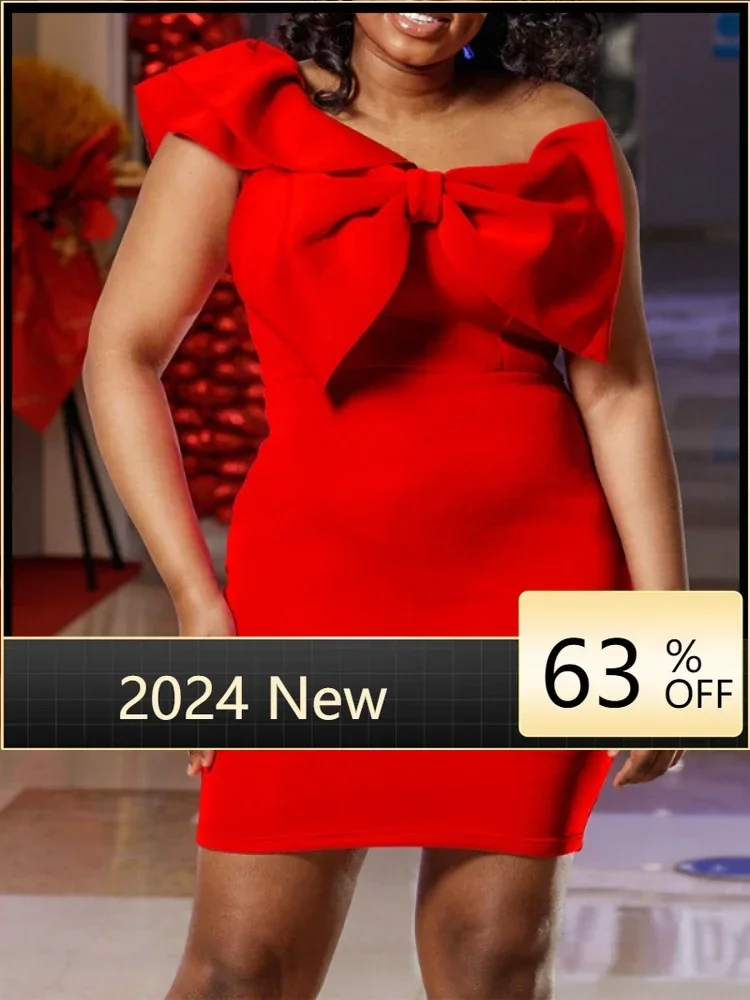 Женское мини-платье с оборками, на одно плечо, с большим бантом
