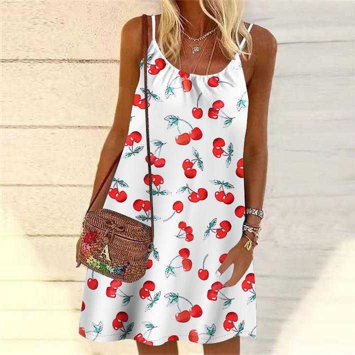 Женское мини-платье с принтом в виде цветка и вишни, вечернее платье без рукавов, летнее пляжное платье, сарафан 2XL белый