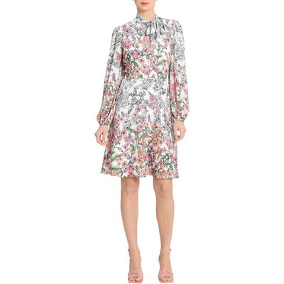 Женское мини-платье с цветочным принтом и расклешенным вырезом Maggy London BHFO 5738, Ivory/pink