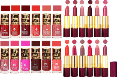 Aroma Care Multicolor Velvet Matte Nail Polish Sets of 12 Pcs with Dry Matte Lipstick Set of 12 Pcs(Set of 24)