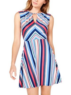 Женское мини-платье трапециевидной формы BEBOP в синюю полоску без рукавов с замочной скважиной для подростков, Синий