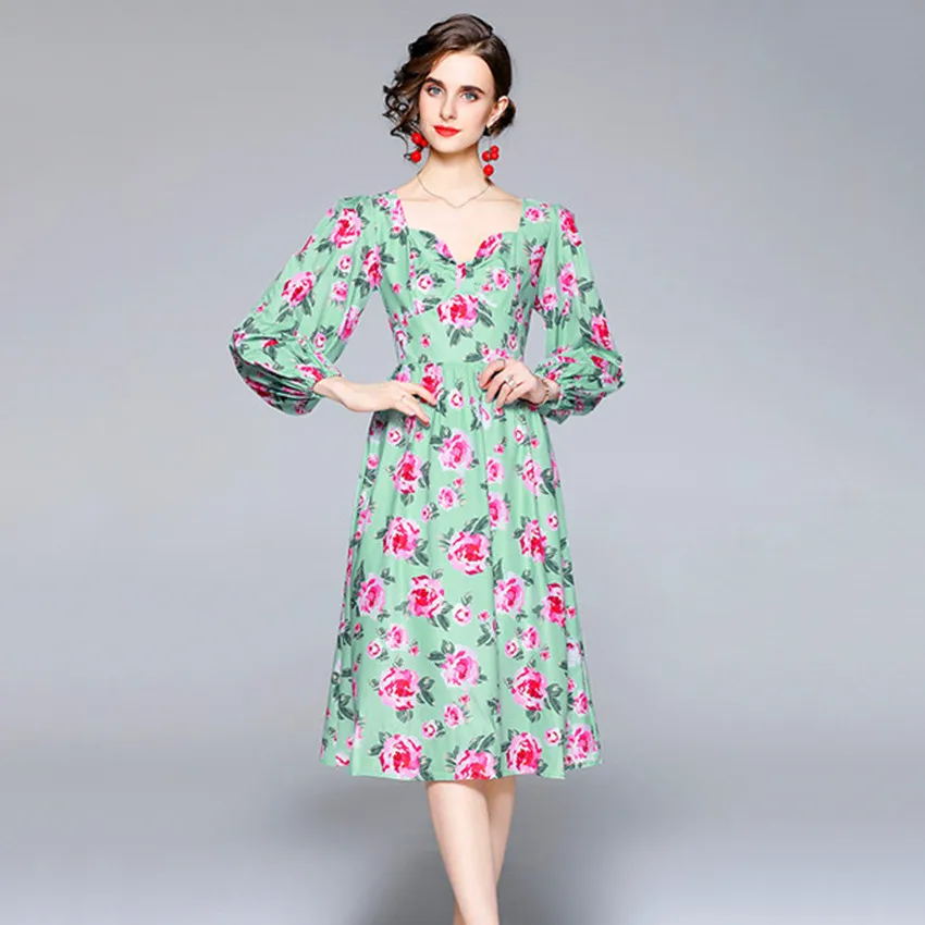 Женское модельное платье с цветочным принтом, элегантное дизайнерское офисное платье миди до середины икры, осень 2021