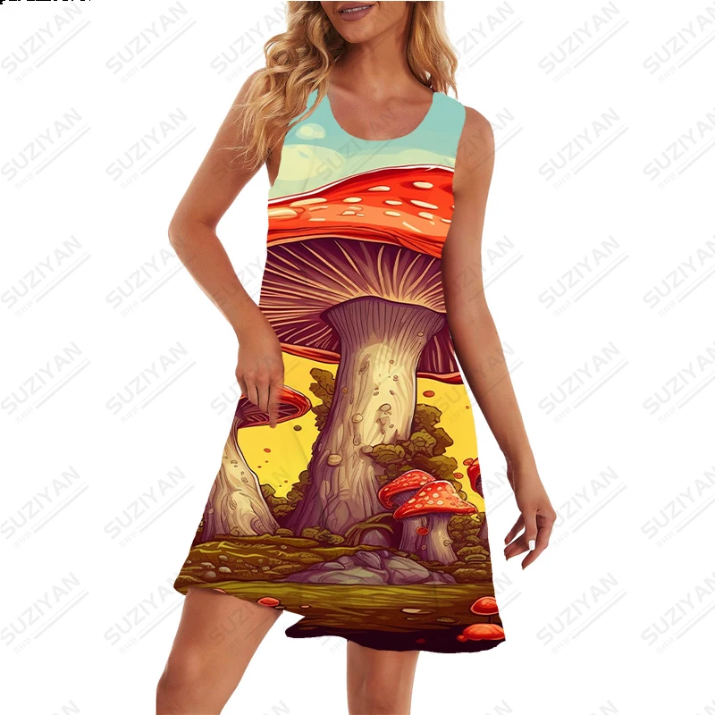 Женское модное Повседневное платье, платье с мультяшным принтом в виде грибов, популярное летнее уличное платье, классическое свободное платье без рукавов