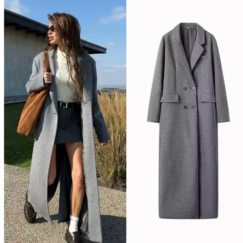 Женское модное длинное шерстяное пальто X-длинная шерстяная куртка Элегантная шикарная универсальная верхняя одежда Осень-зима Женский пиджак Уличная одежда