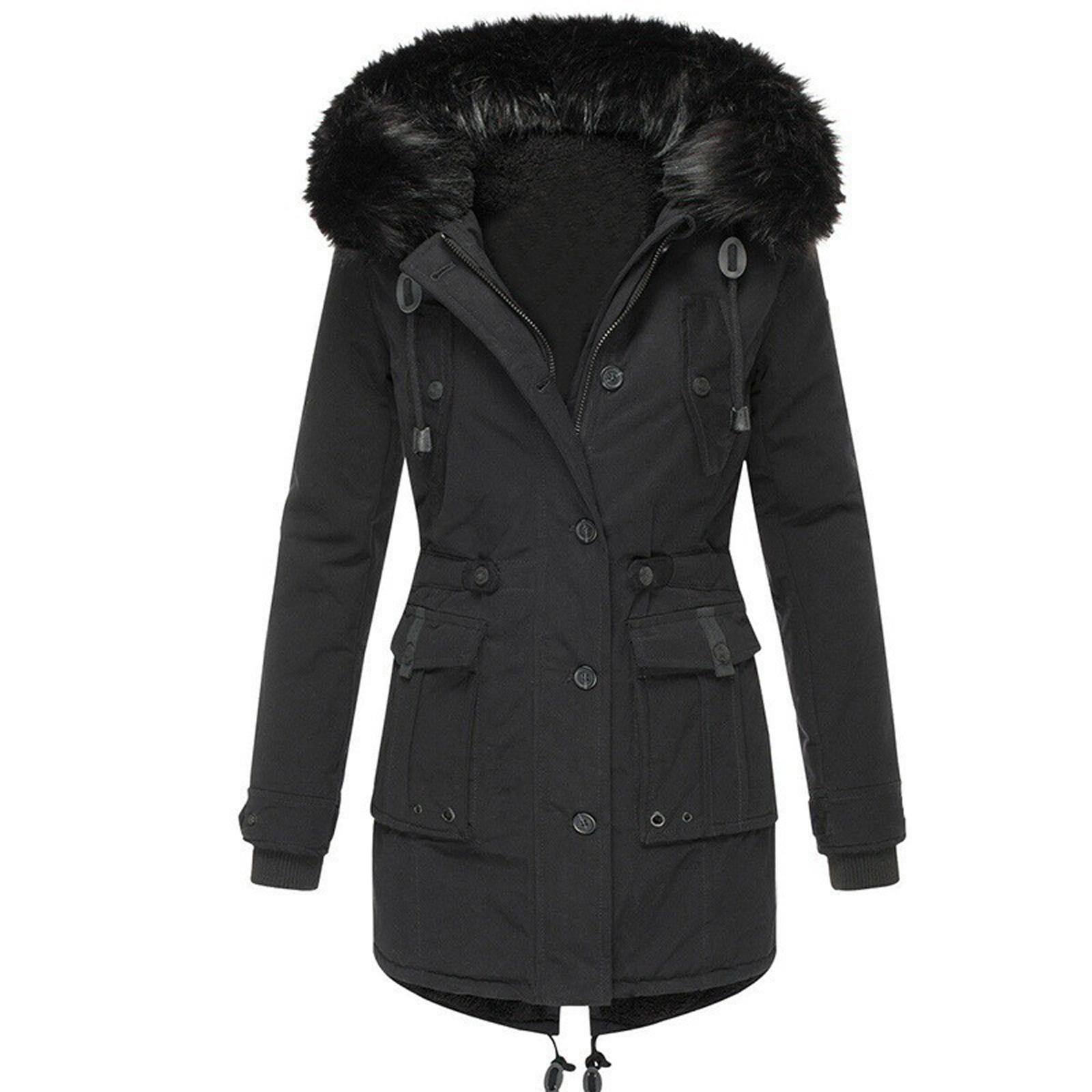 Женское модное зимнее пальто с утолщенным хлопковым подкладом из флиса, с воротником-стойкой, зимнее пальто L чёрный