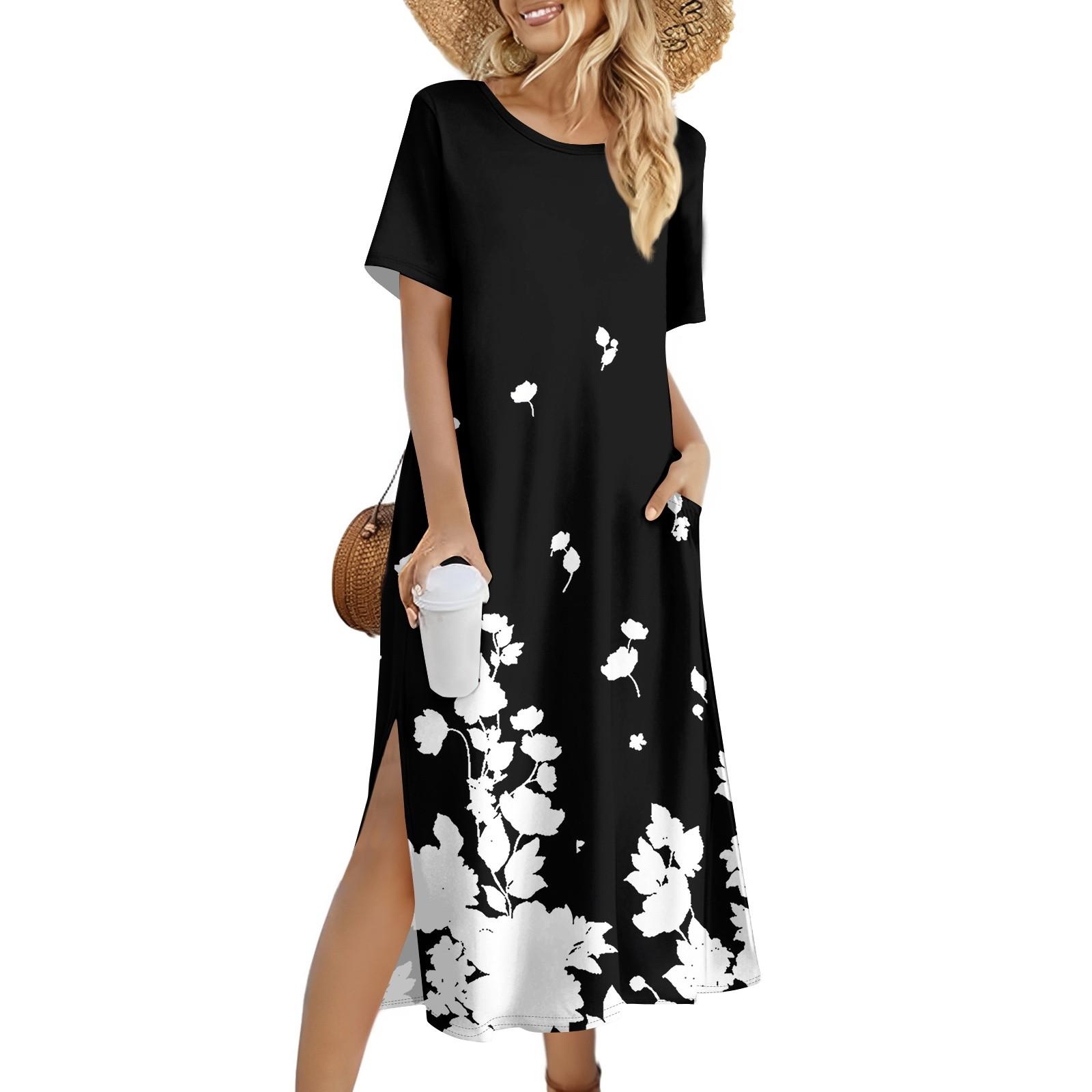 Женское модное летнее платье с цветочным принтом, повседневное пляжное платье, облегающее праздничное платье XL чёрный
