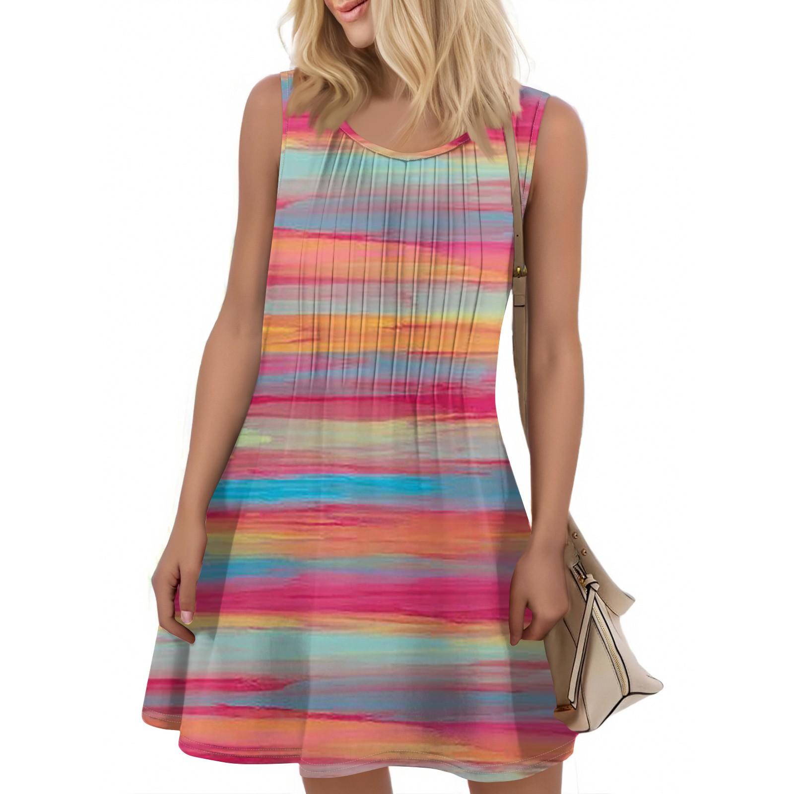 Женское модное летнее полосатое платье с принтом, свободное пляжное повседневное платье без рукавов для отдыха S