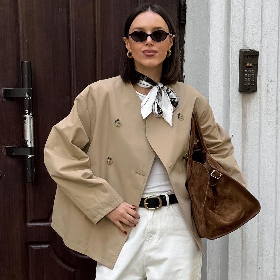 Женское модное пальто-тренч Осень/Зима 2024 с V-образным вырезом, свободного кроя, двубортное S