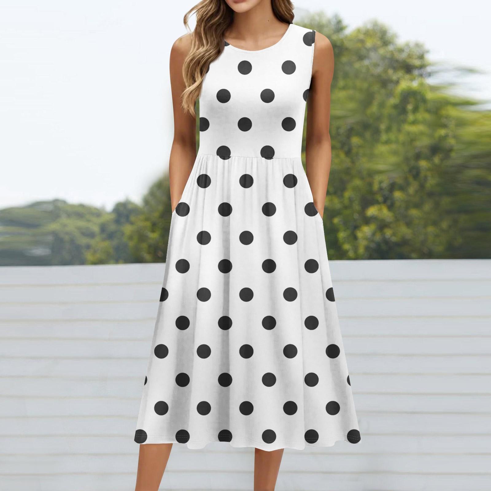 Женское модное платье средней длины с круглым вырезом и принтом без рукавов XXXL белый