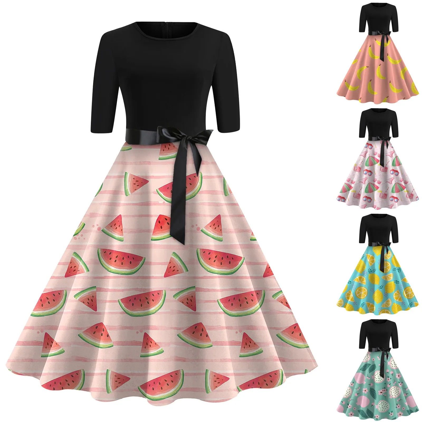 Женское модное платье с поясом, повседневное уличное простое платье с круглым вырезом и принтом арбуза, стильные и модные дизайнерские платья