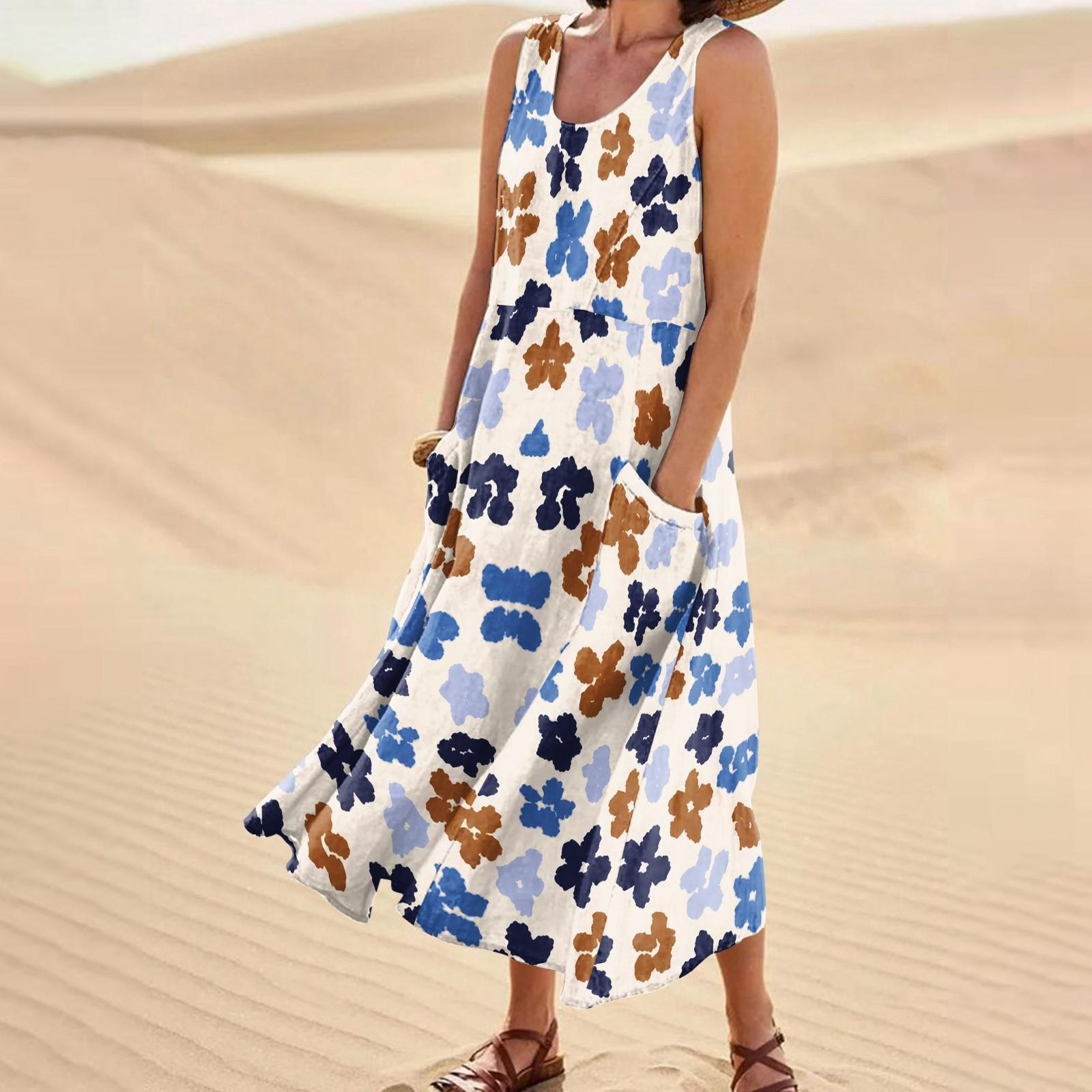 Женское модное повседневное однотонное хлопковое льняное платье без рукавов с карманами XXXL коричневый