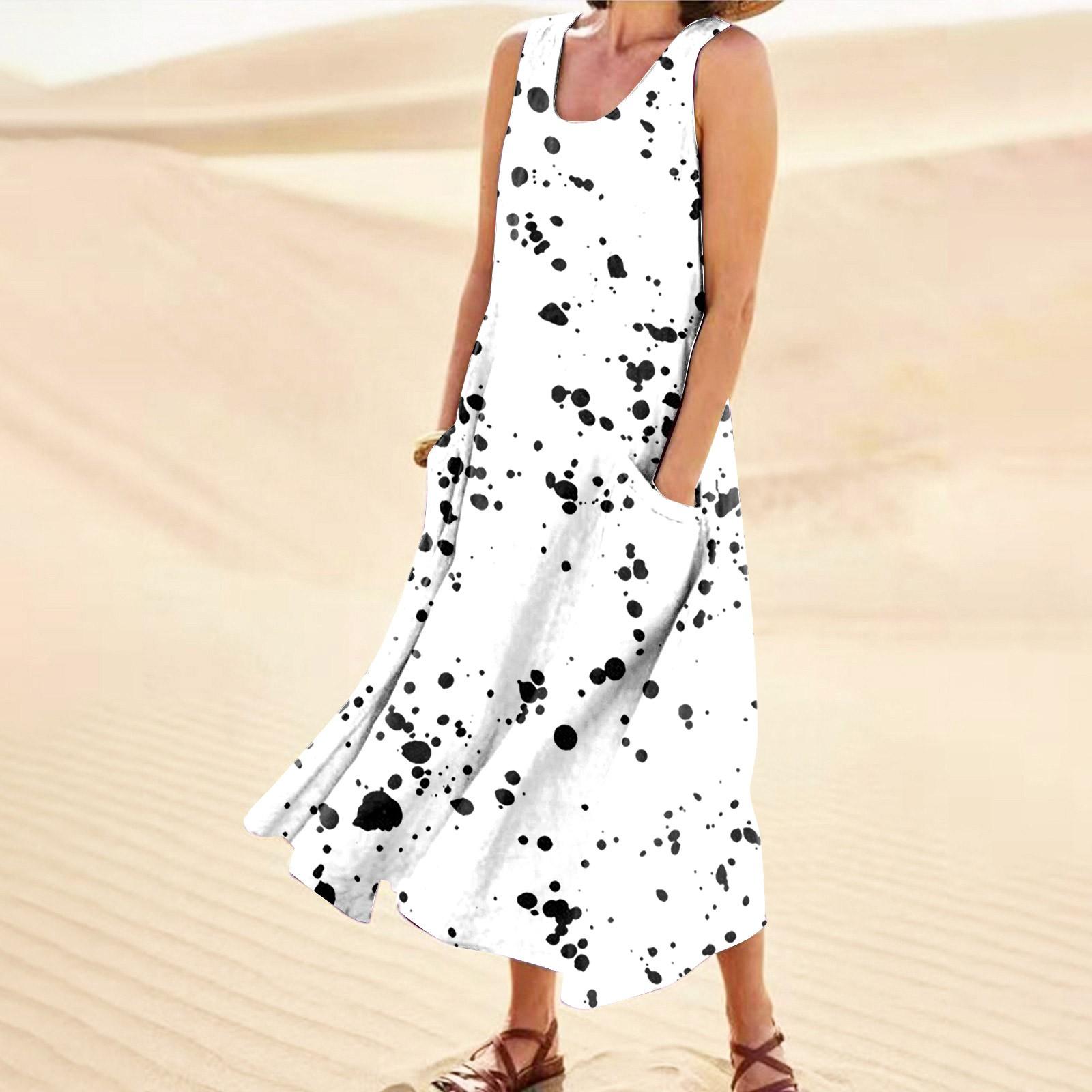Женское модное повседневное однотонное хлопковое льняное платье без рукавов с карманами XXXXXL белый