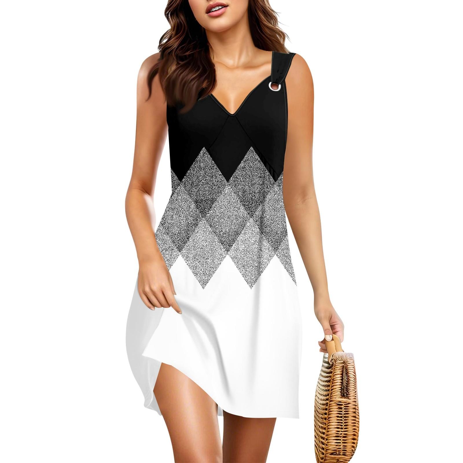 Женское модное повседневное платье без рукавов с V-образным вырезом и принтом в стиле ретро XXL чёрный