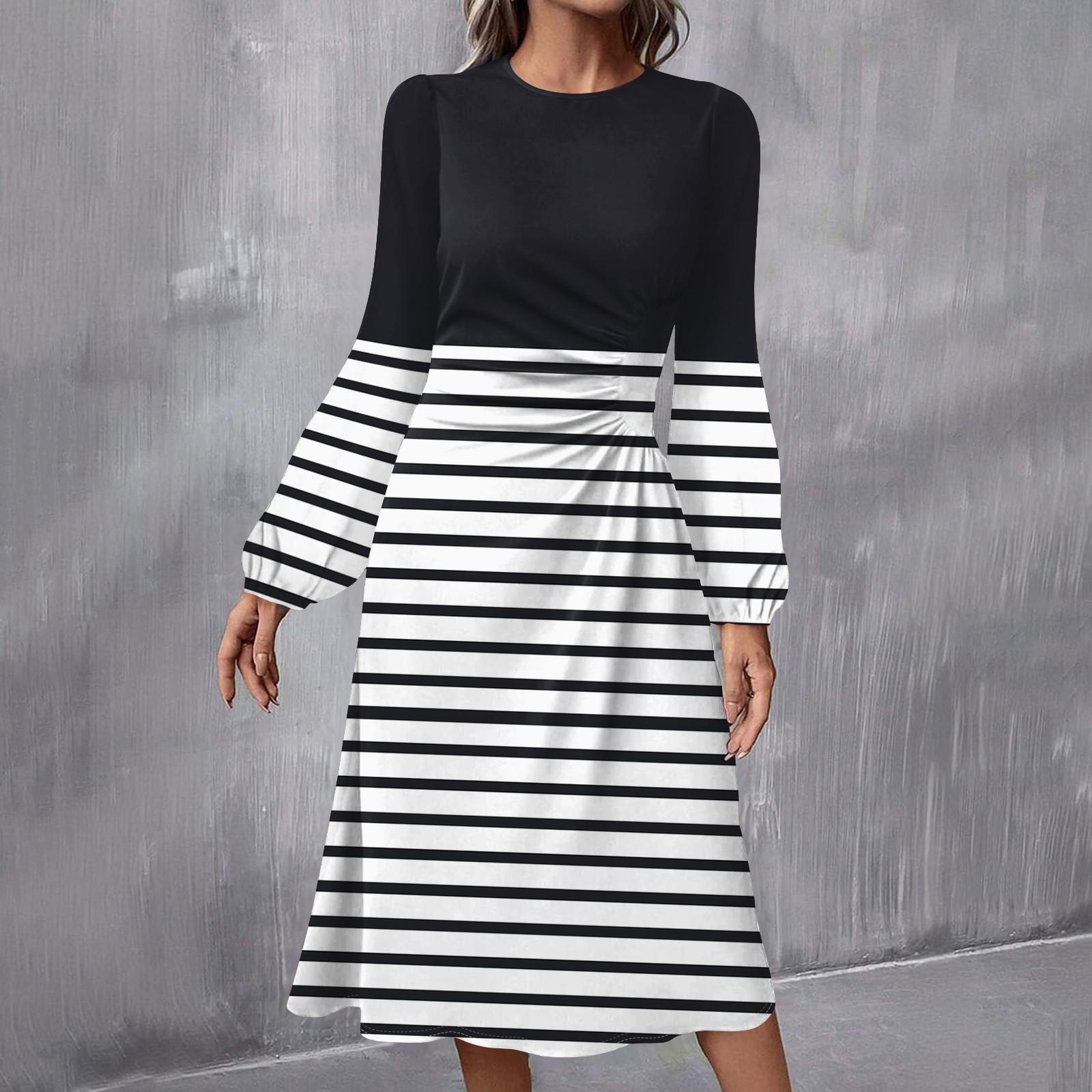 Женское модное повседневное платье миди с круглым вырезом и длинными рукавами L чёрный