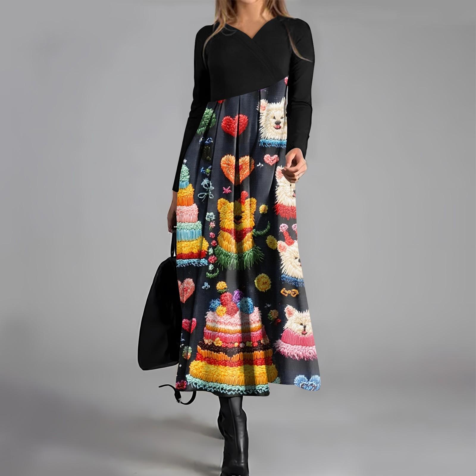 Женское модное повседневное платье свободного покроя с V-образным вырезом, длинными рукавами, цветочным принтом и карманом на талии L чёрный
