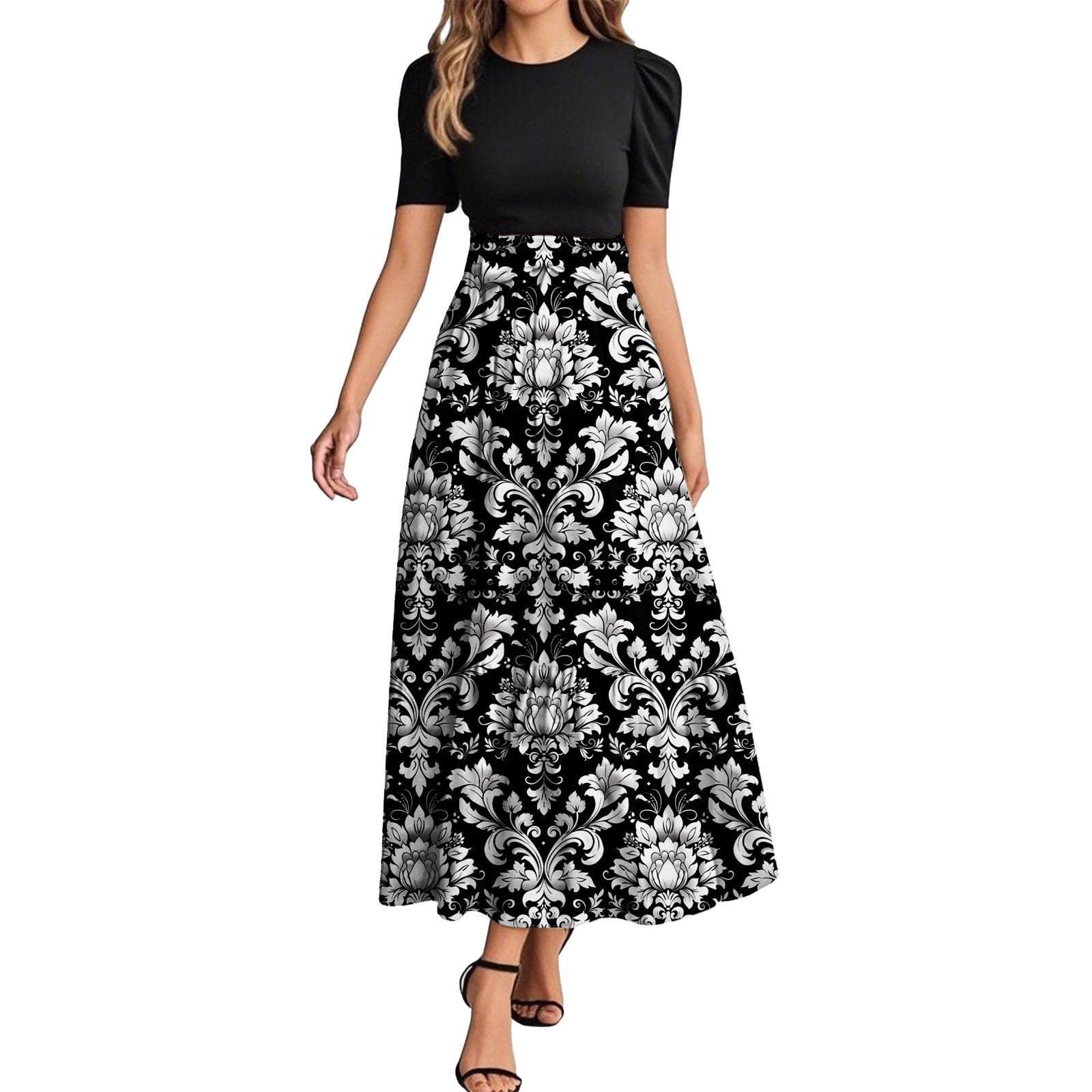 Женское модное повседневное платье с коротким рукавом и круглым вырезом с цветочной вышивкой, элегантное, темпераментное L коричневый