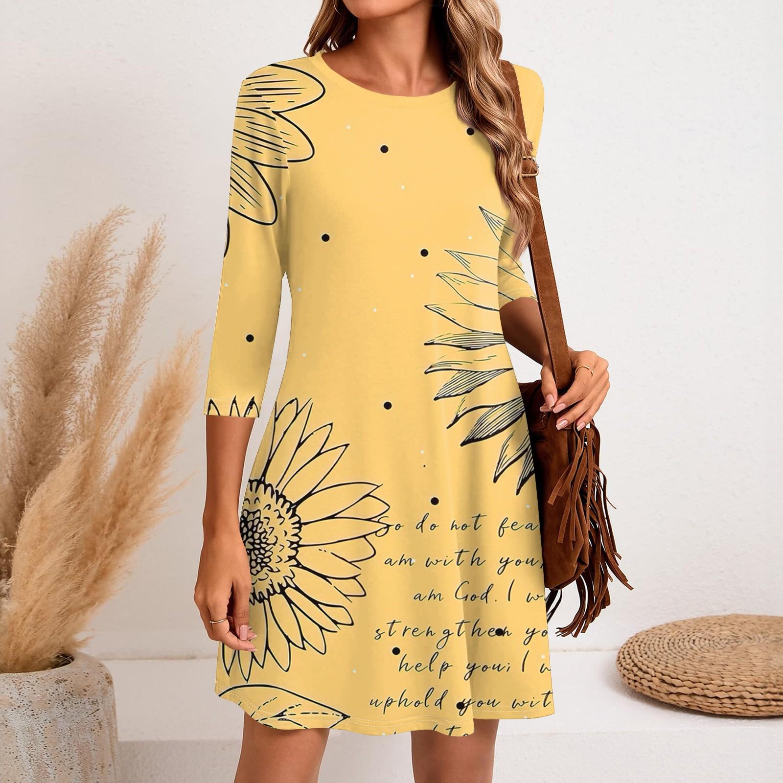 Женское модное повседневное платье с круглым вырезом и рукавом три четверти XL жёлтый