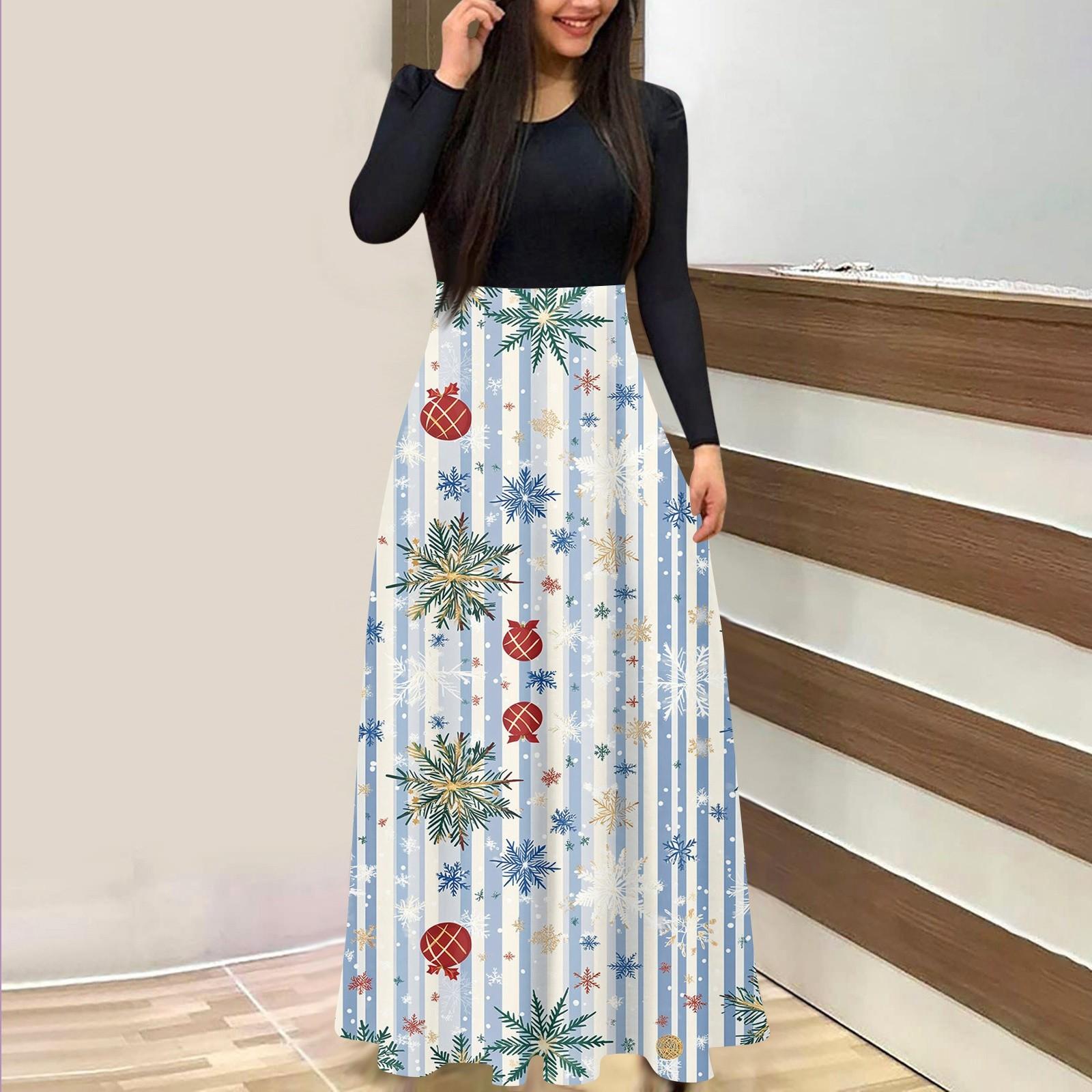 Женское модное повседневное платье с рождественским принтом, круглым вырезом и длинными рукавами S