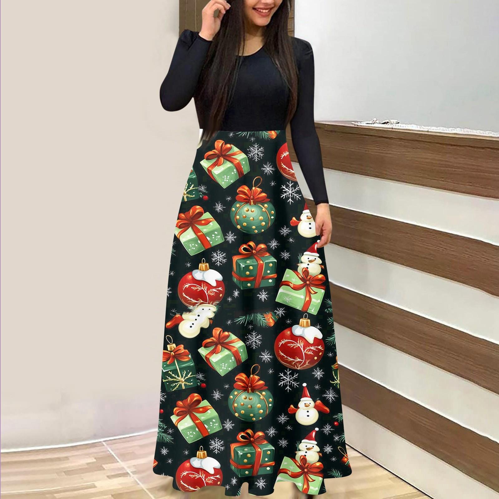 Женское модное повседневное платье с рождественским принтом, круглым вырезом и длинными рукавами XL