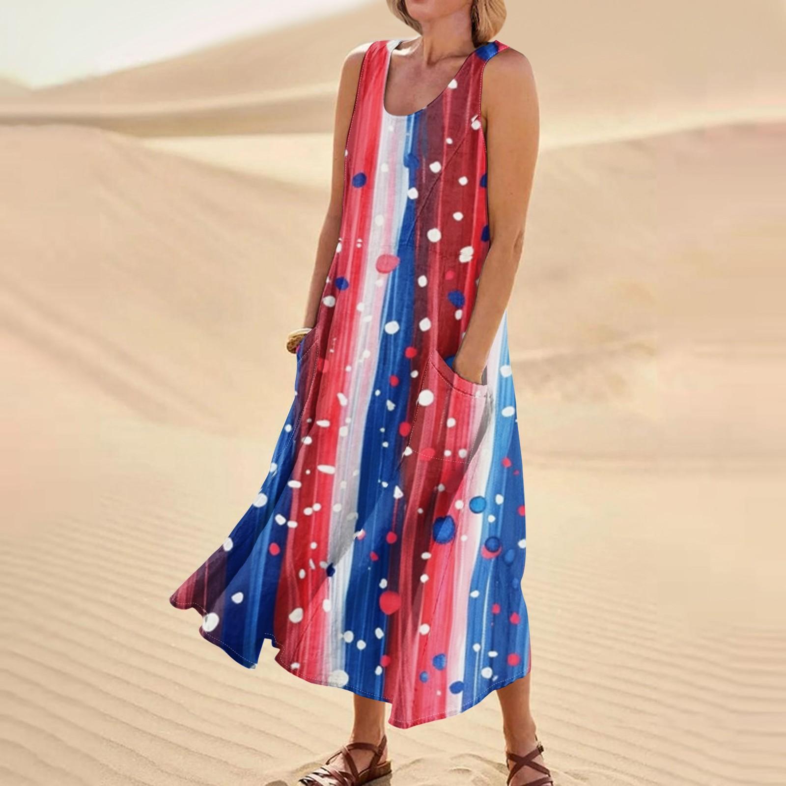 Женское модное повседневное хлопковое льняное платье без рукавов с принтом и карманами XL арбуз красный