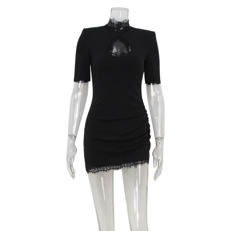 Женское модное сексуальное ажурное кружевное лоскутное платье с сумкой и ягодицами S чёрный