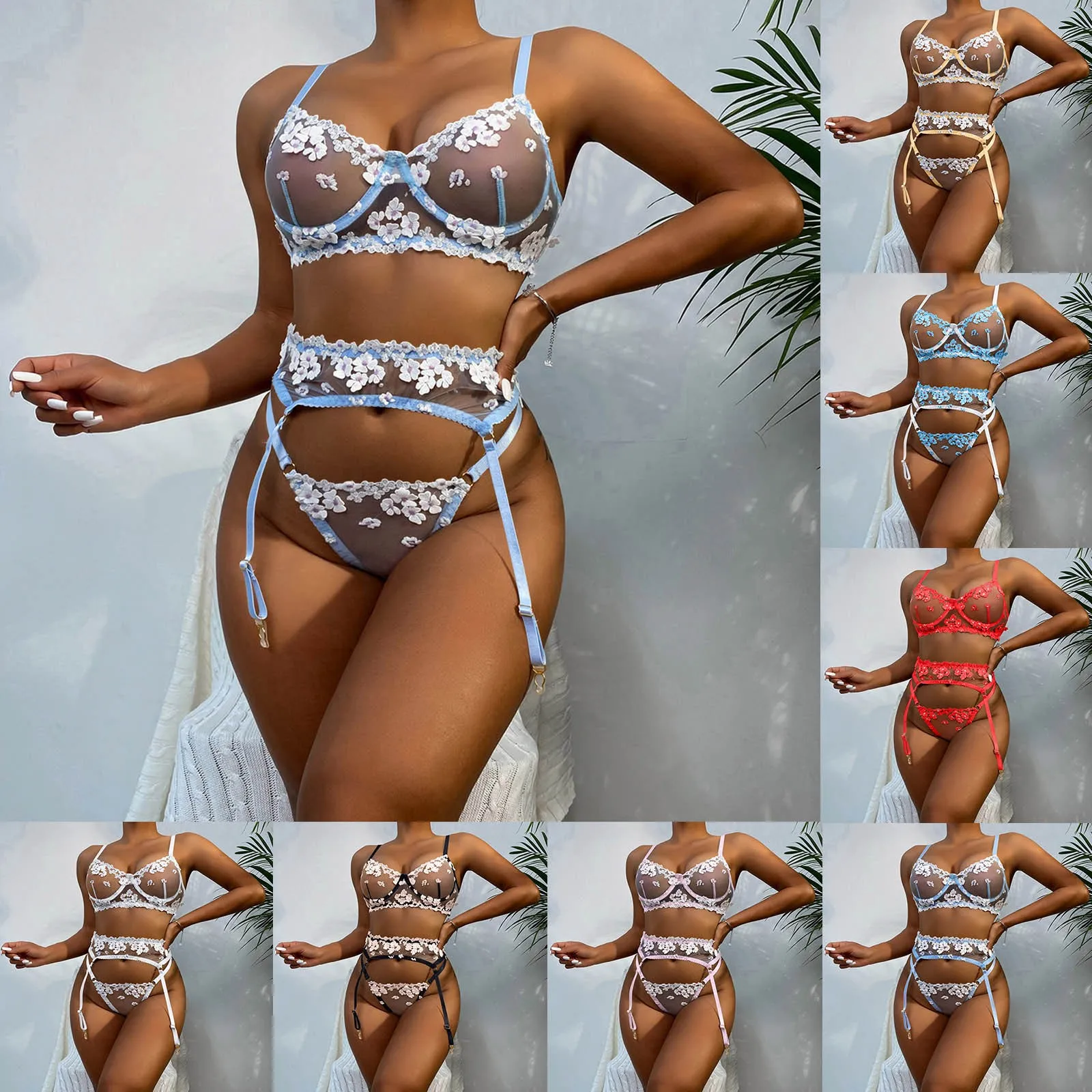 Женское модное сексуальное кружевное соблазнительное нижнее белье с цветочной вышивкой, облегающее соблазнительное нижнее белье, соблазн...