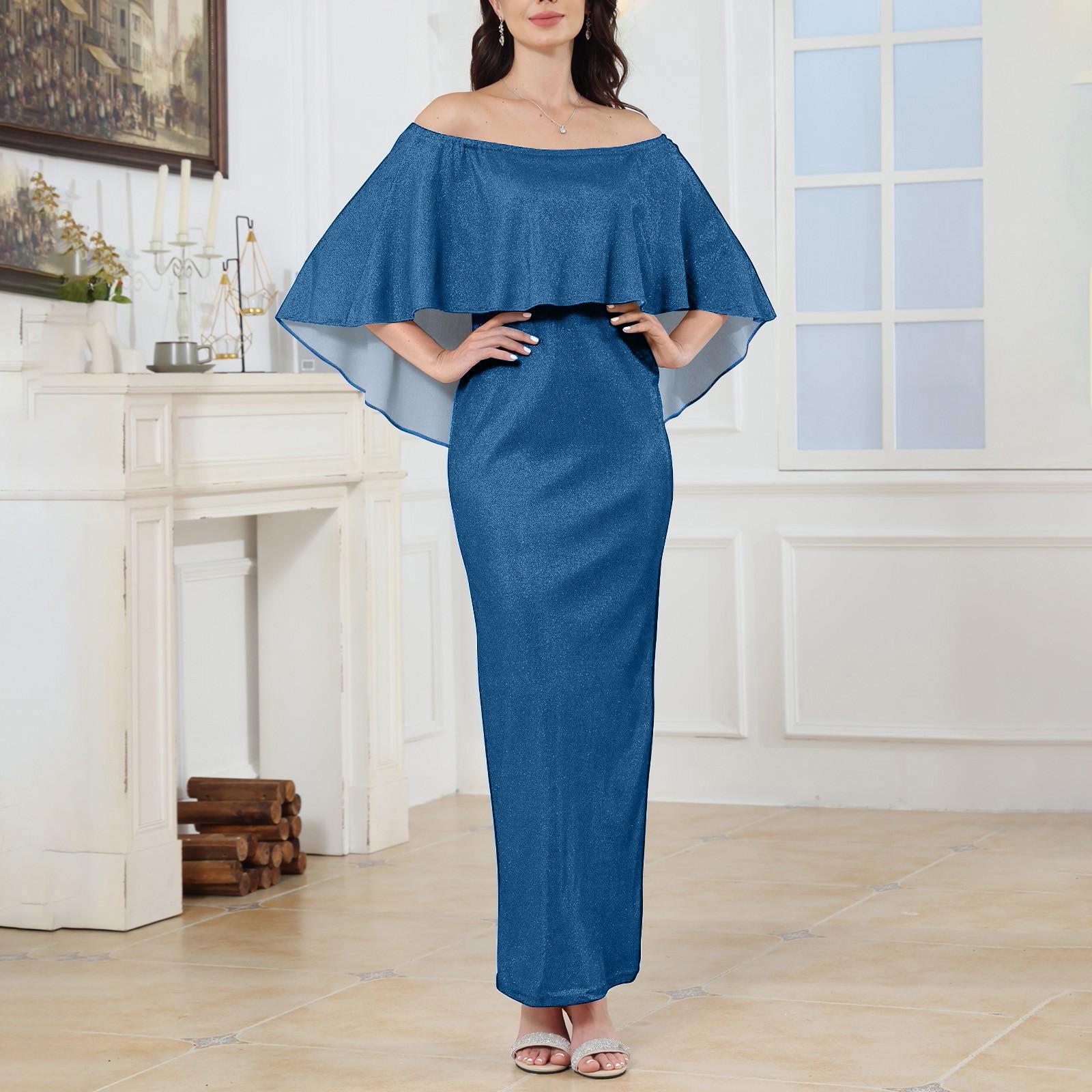 Женское модное сексуальное однотонное вечернее платье с открытыми плечами, облегающее платье с пайетками и запахом на бедрах XL