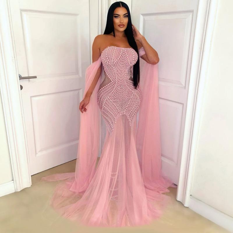 Женское модное сексуальное платье без бретелек, длинное платье из марли, вечерняя церемония XXL розовый