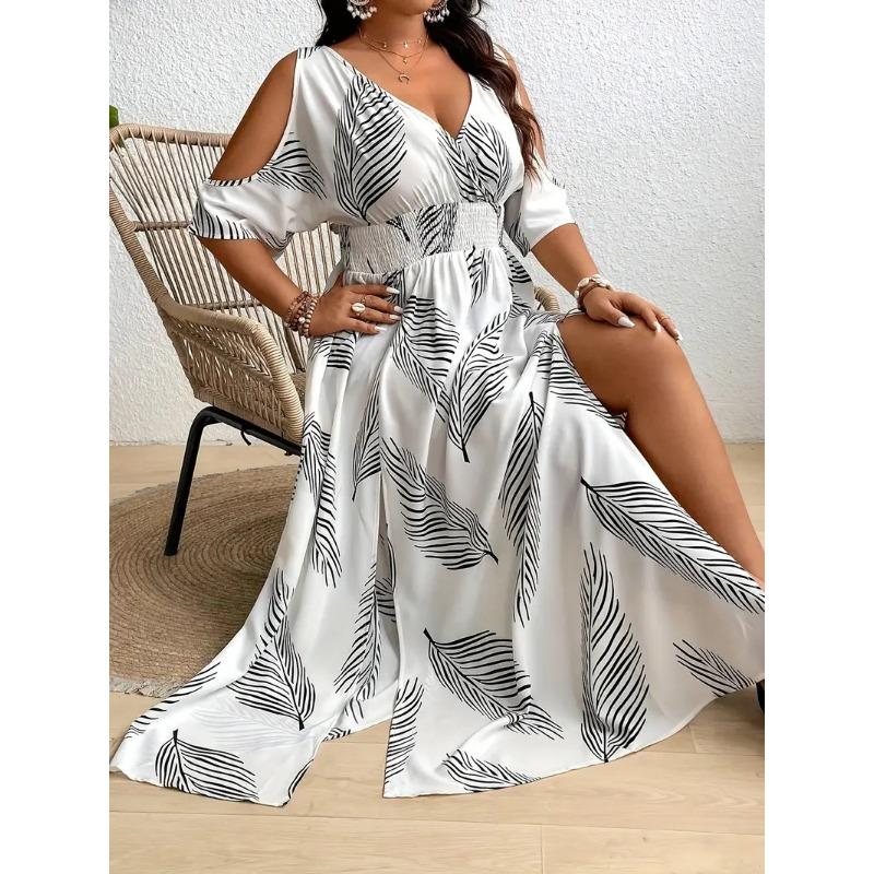 Женское модное сексуальное платье с принтом и V-образным вырезом, элегантное платье с разрезом на плечах 4XL белый