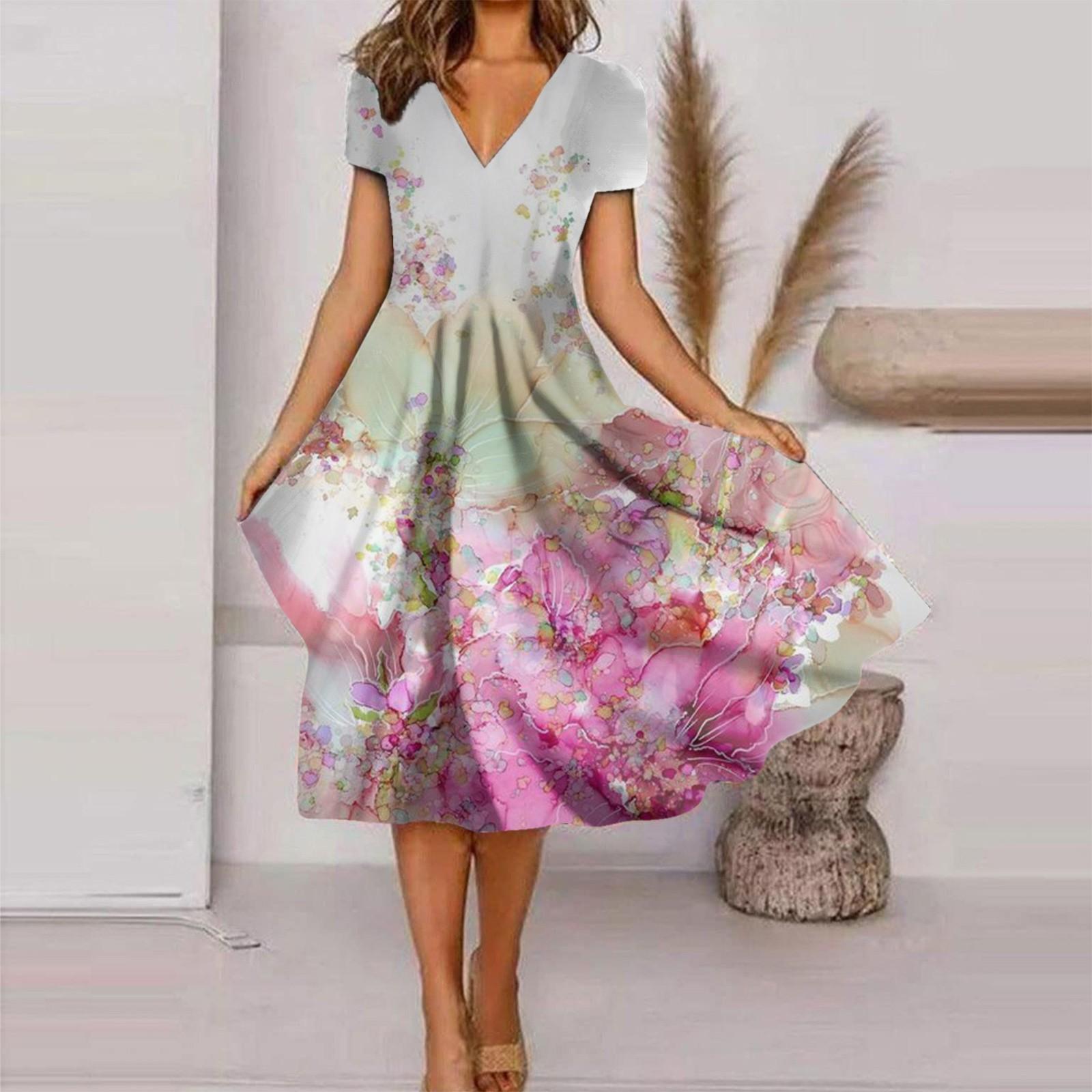 Женское модное и универсальное летнее темпераментное платье с v-образным вырезом и короткими рукавами с принтом XXXXXL белый