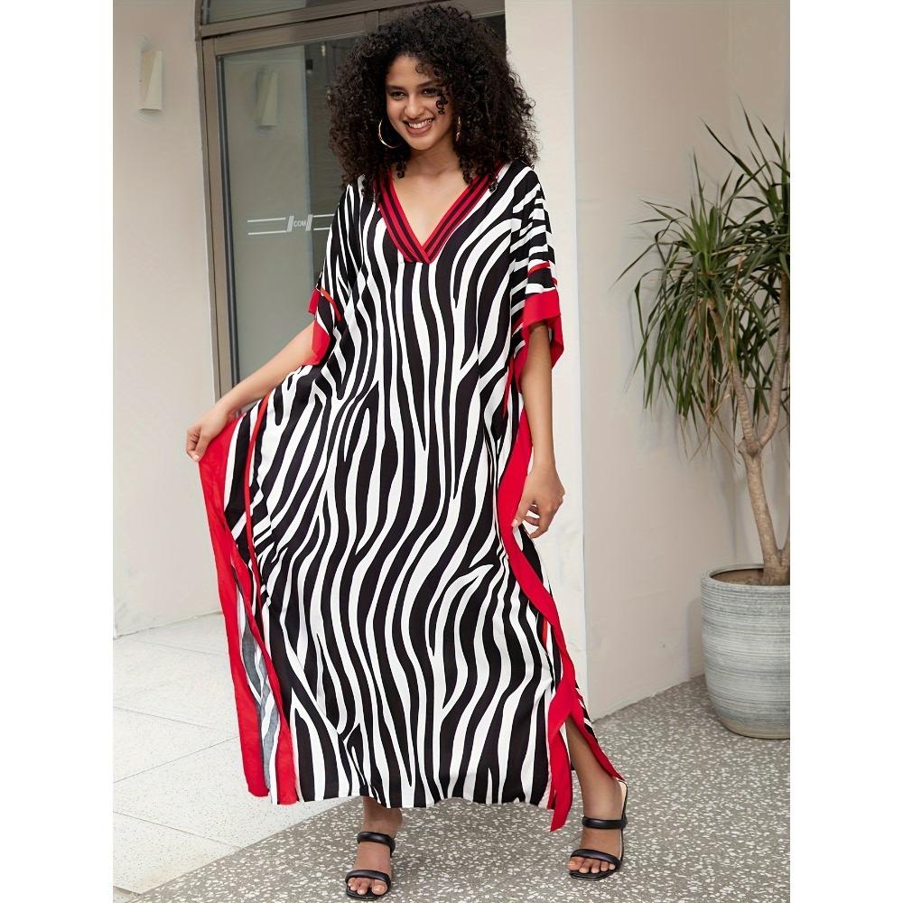 Женское накидка в стиле бохо, большие размеры, контрастное красочное полосатое платье с v-образным вырезом, свободный крой, пляжное платье-кафтан Vacay One-size белый