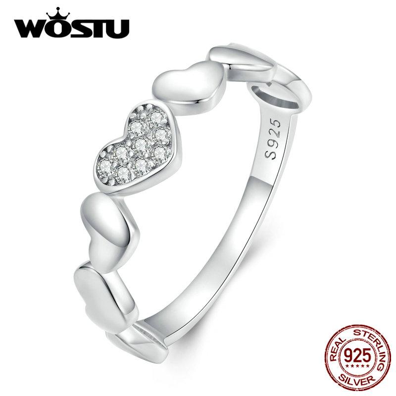 Женское накладное кольцо WOSTU из стерлингового серебра 925 пробы с нежным фианитом в форме сердца, простые и модные кольца 6
