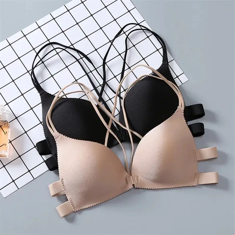 Женское нижнее белье без стального кольца, красивый бюстгальтер с эффектом пуш-ап, однотонное женское нижнее белье